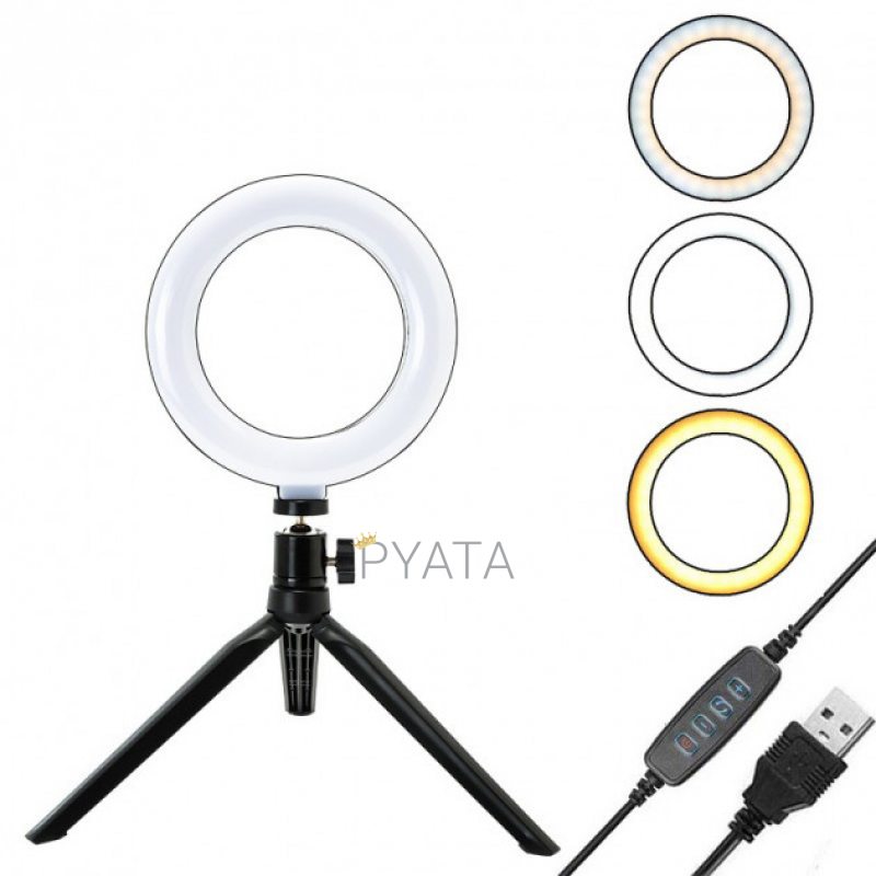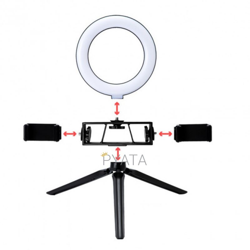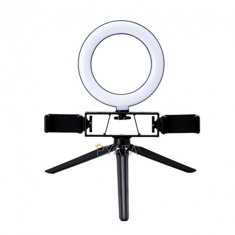 Кільцева лампа настільна 16 см з двома тримачами для телефону Live Fill Light - повноцінне джерело світла навіть, якщо знімати відео або робити фото в непроглядній темряві. Вам більше не потрібно буде планувати фотосесії залежно від погоди чи часу дня. Ви станете незалежними від природного світла у приміщенні та на природі.