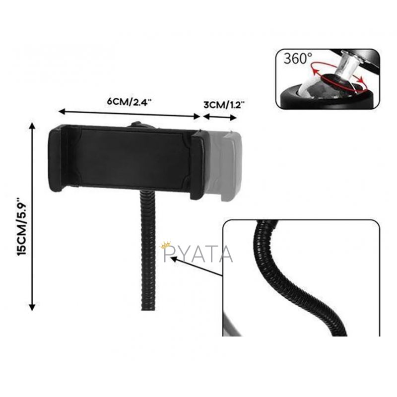 - для установки смартфона, використовується гнучка ніжка з тримачем для телефону. Такий тип установки смартфона надає максимальну свободу регулювань і краще розташування з оглядкою на якість освітлення.